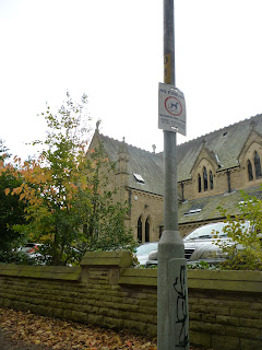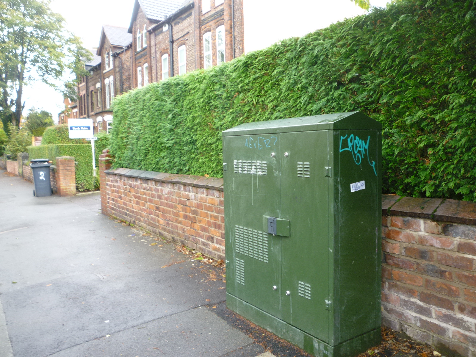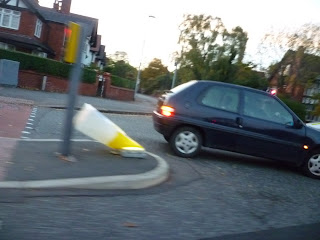 Damaged lit bollard on Wilmslow Road (that car hadn't just squashed it!) |