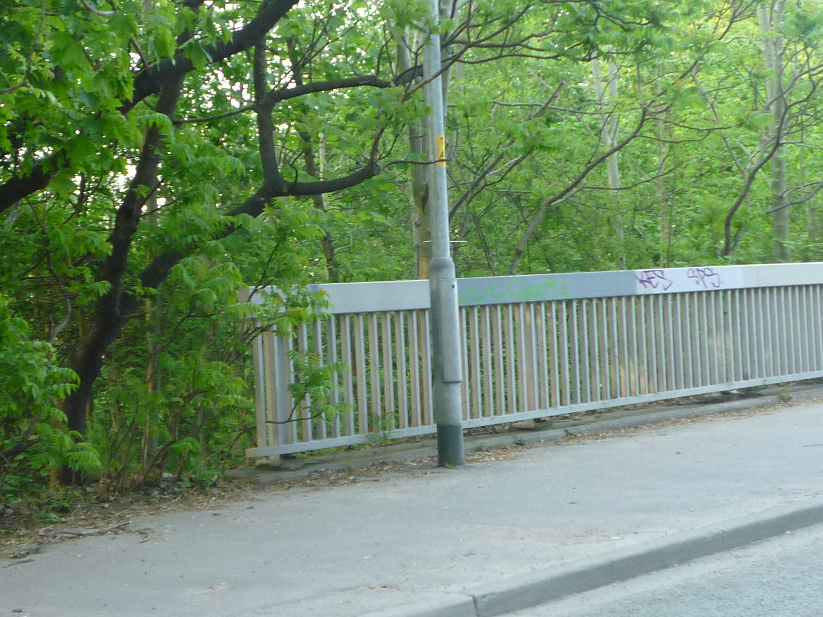 School Lane bridge next to Barlow HS - I can't see graffiti in this photo either, but it was there and now it's gone! (and on the other side of the bridge) |
