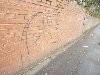 Cotton Lane wall opposite St Cuthberts - plus several street cabinets and lamp posts |
