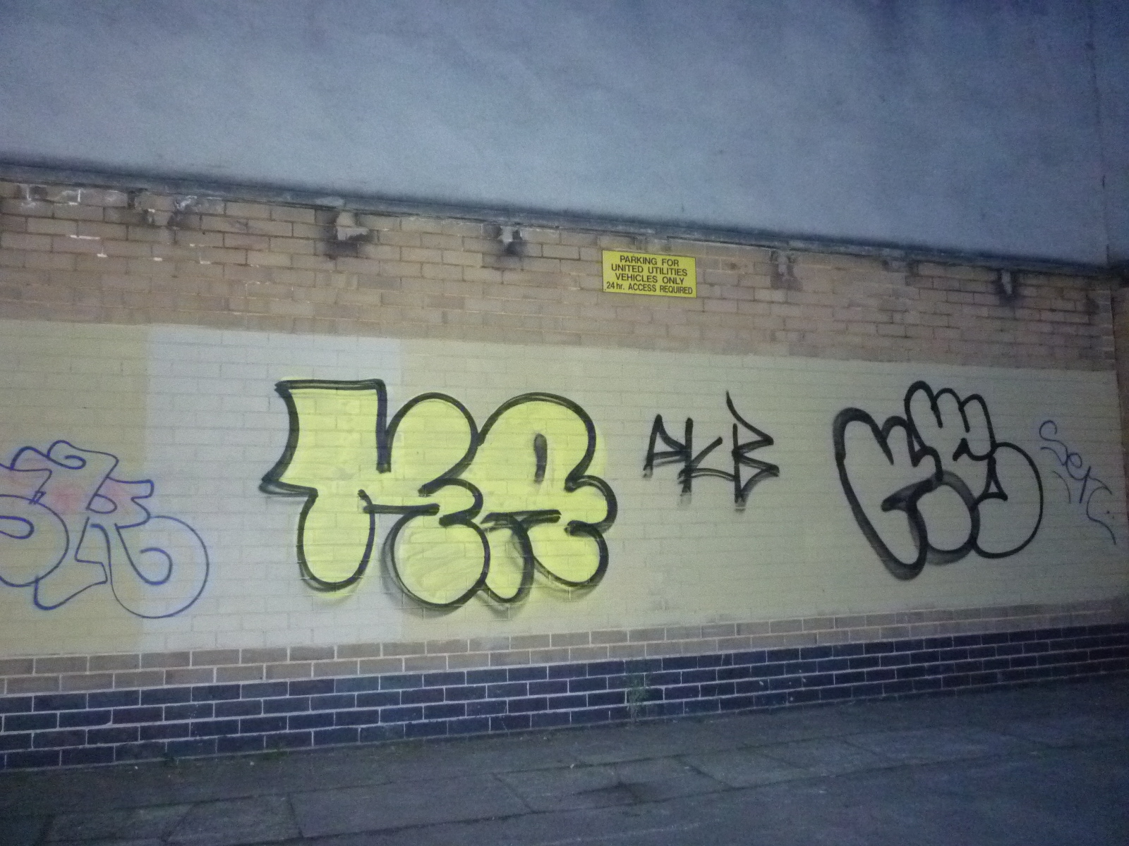 A disgrace - vandalised sub station on William Street in the Village - the scourge of Didsbury, Serk, has tagged all over this building